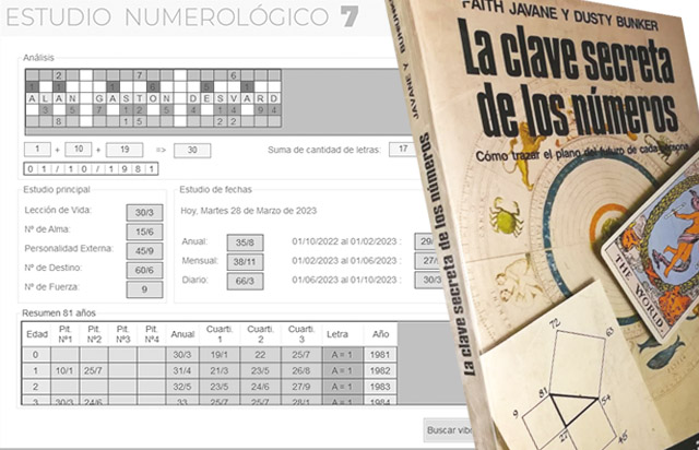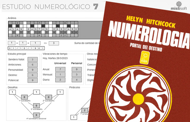 El software “Estudio Numerológico 7”, desarrollado y comercializado por MistiSoft, es la última versión de un largo y minucioso trabajo y es el resultado más acabado de versiones anteriores. El software se compone de 3 módulos independientes que se adaptan al estilo del usuario y permite realizar cálculos numerológicos con distintos formatos sobre una persona.
