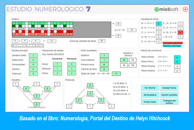 permite realizar estudios de personas y hogares a través de un informe muy completo. El software realiza cálculos de fechas específicas y arroja predicciones, incluyendo análisis de los siguientes resultados: